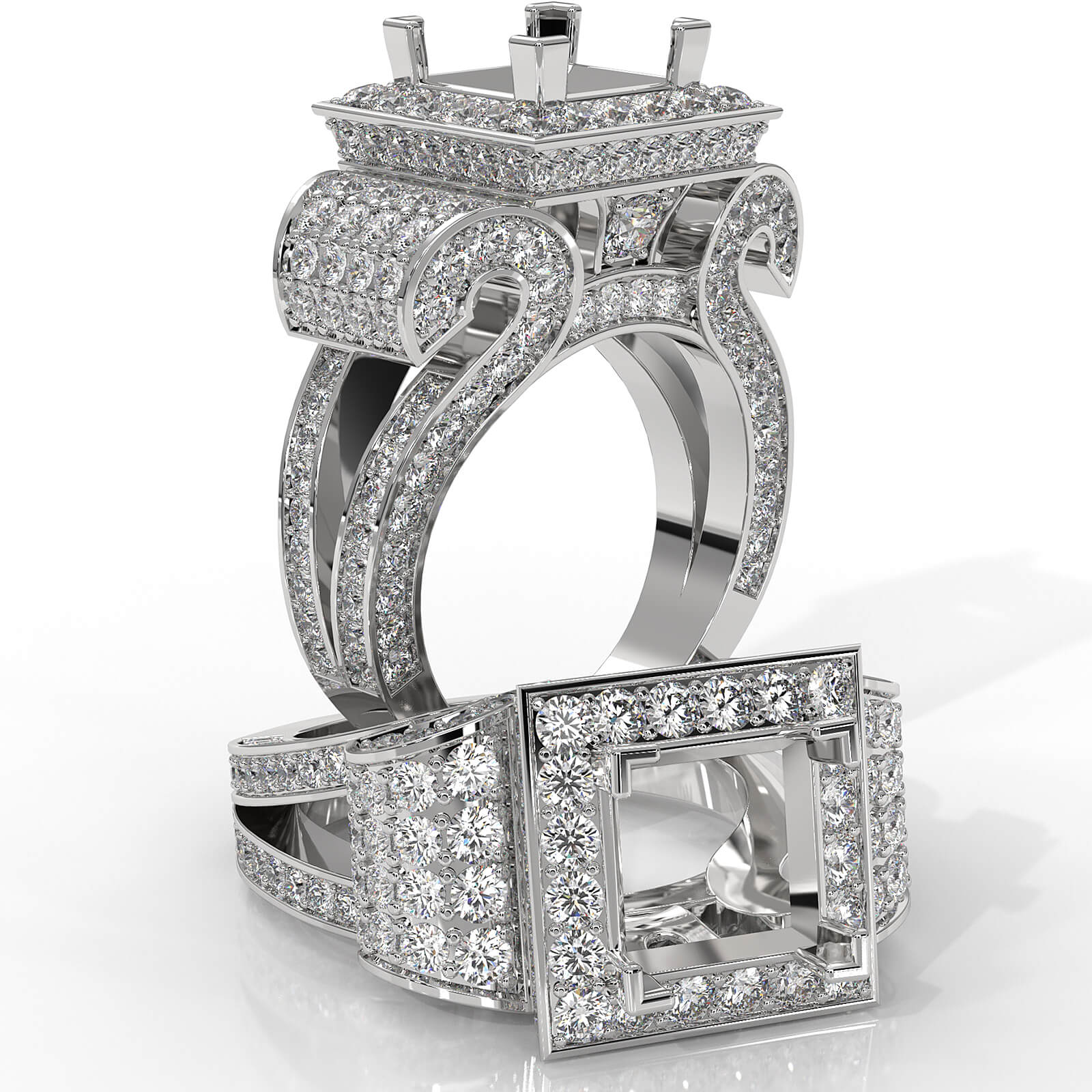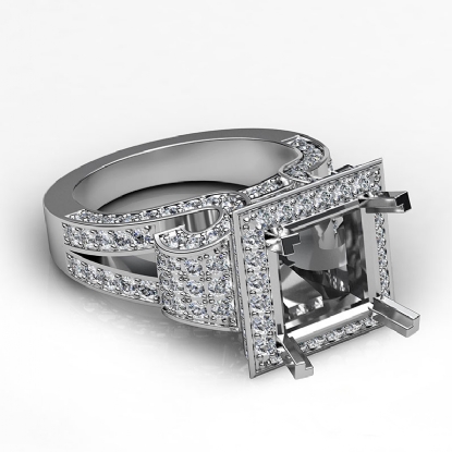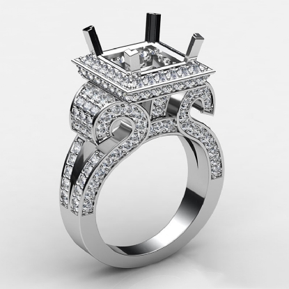 Diamond Princess Antique & Vintage Semi Mount Engagement Halo Setting Ring 14K White Gold 2.25ct.