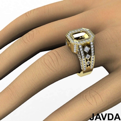 Emerald Semi-Mount Vintage Diamond Engagement Ring Halo Pave Setting 18k Gold (2.3Ct. tw.)