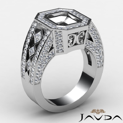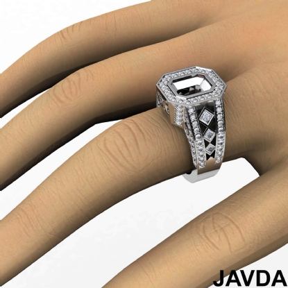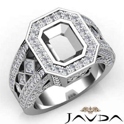 Emerald Semi-Mount Vintage Diamond Engagement Ring Halo Pave Setting Platinum (2.3Ct. tw.)