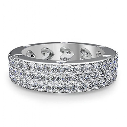 Bezel Pave 3Row Round Diamond Ring Womens Eternity Wedding Band 18k W Gold (2.4Ct. tw.)