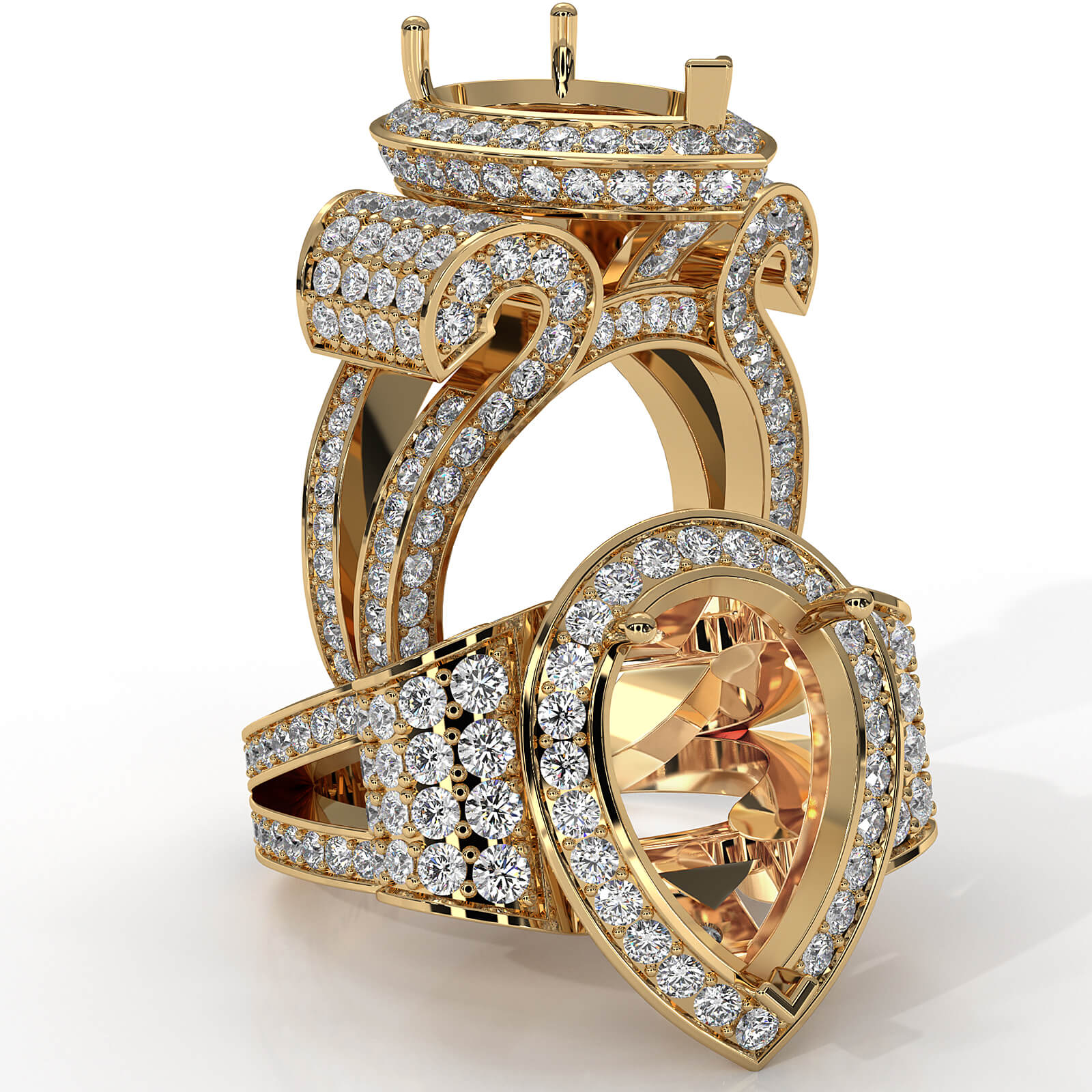 Diamond Engagement Ring Antique & Vintage Pear Semi Mount Halo Setting 18k Gold (2.4Ct. tw.)
