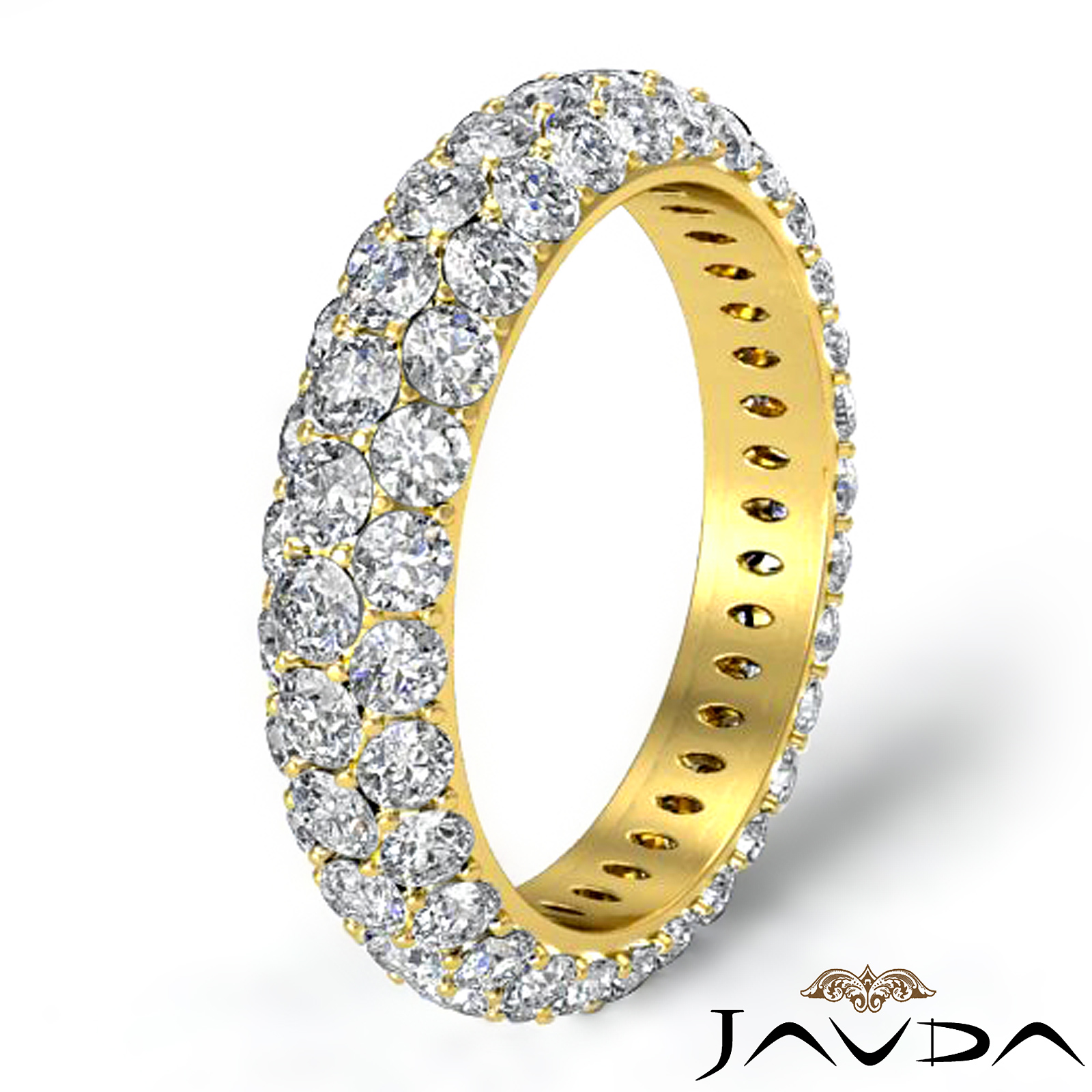 3 Row Round Pave Diamond Women Eternity Ring Band made in 14k Gold Yellow. (3Ct. tw.)