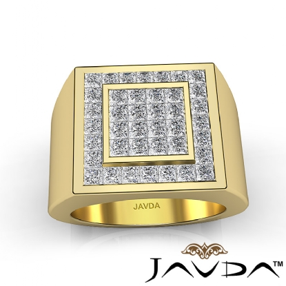 Princess Men Diamond Ring Men's Band made in 14k Gold Yellow. (2.5Ct. tw.)