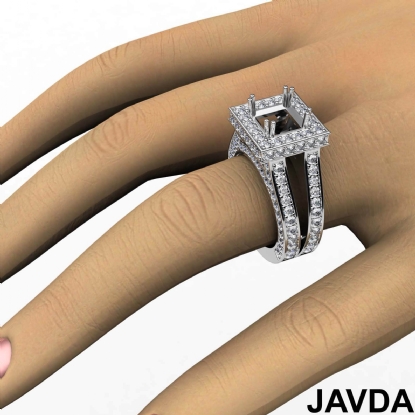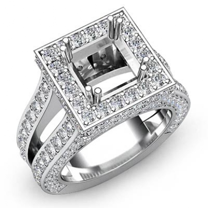 2.5Ct Diamond Engagement Ring Princess Semi Mount Halo Setting 14k White Gold