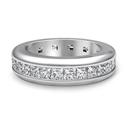 2.5 Carat Princess Diamond Women's Channel Set Eternity Wedding Band Ring made in 14k White Gold.
