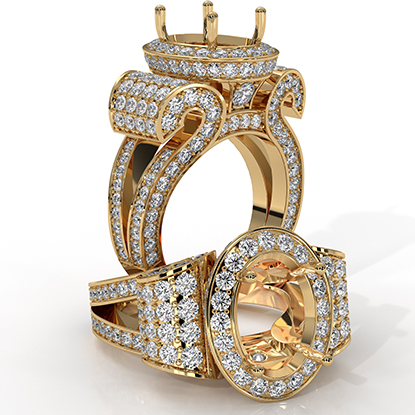 Vintage Oval Diamond Engagement Semi Mount Ring Halo Setting 14k Gold (2.6Ct. tw.)