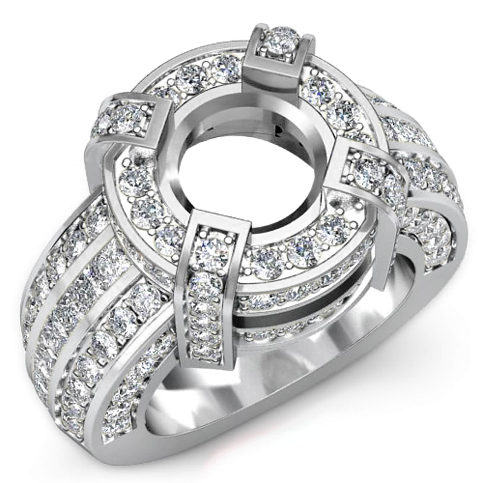 2.90Ct Round Semi Mount Diamond Engagement Halo Pave Setting Ring 14K White Gold