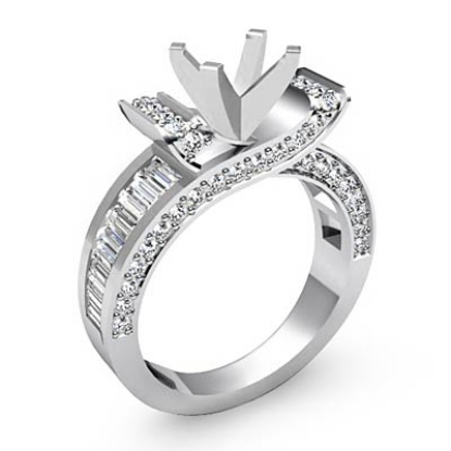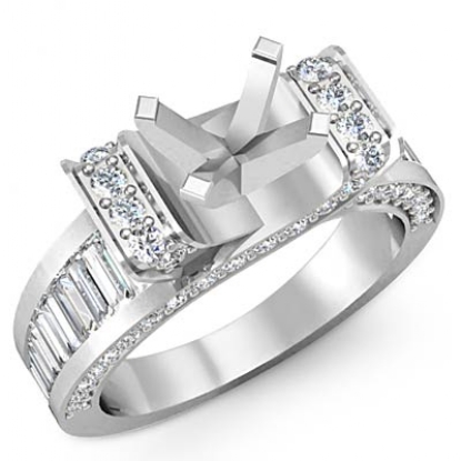 2Ct Round Baguette Diamond Engagement Antique Ring Setting 14k W Gold Semi Mount