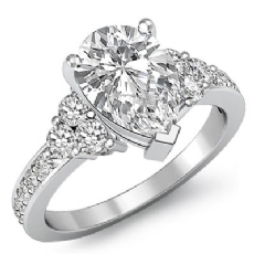 Three Stone Pave Sidestone Oval diamond engagement Ring in 14k Gold White