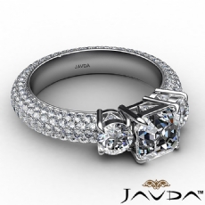 Micro Pave Set Three Stone Cushion diamond engagement Ring in 14k Gold White