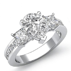 3 Stone Channel Sidestone Princess diamond engagement Ring in 14k Gold White