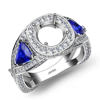 3 Stone Diamond Engagement Trillion Round Semi Mount Ring 14k White Gold 1.84Ct