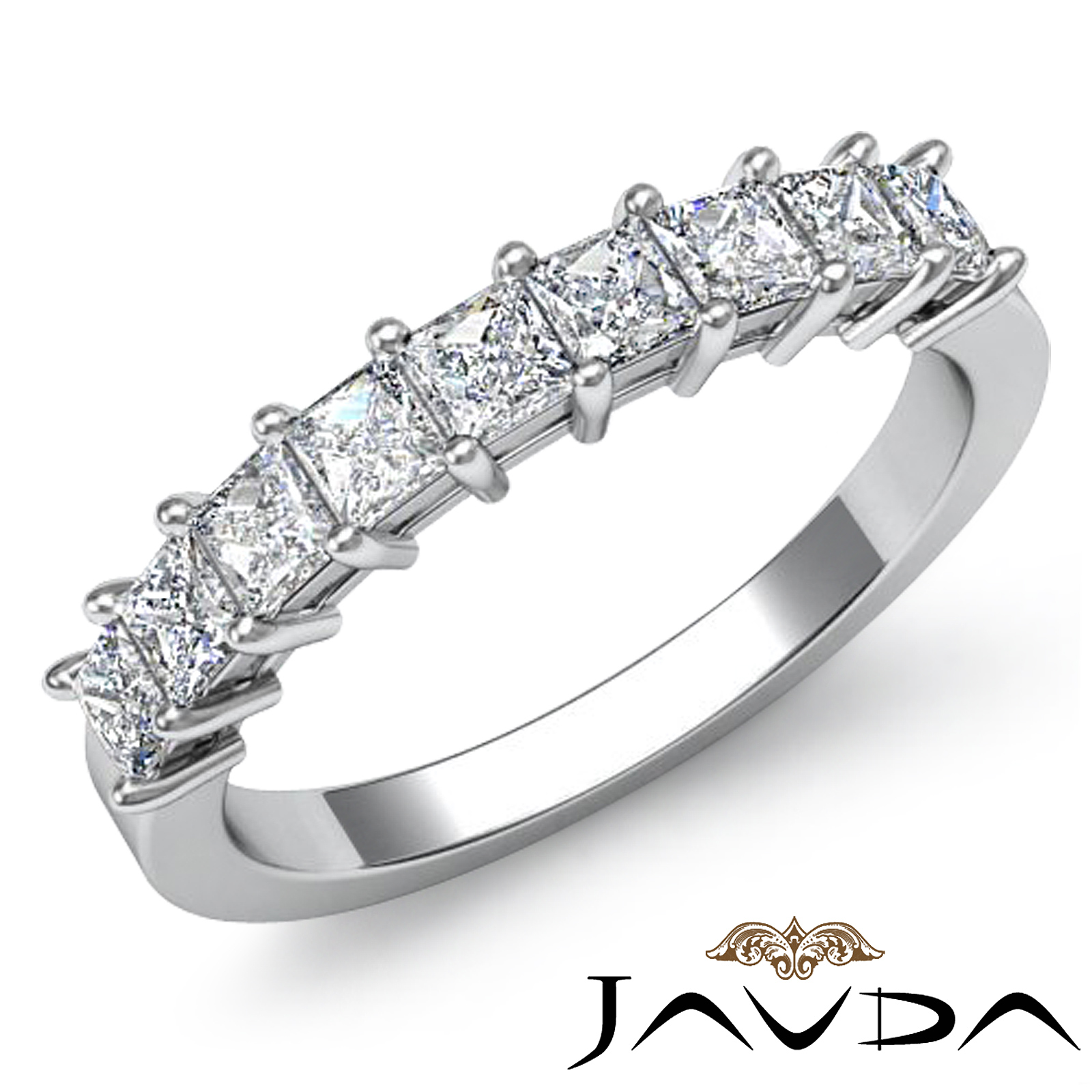 Princess Diamond Shared Prong Half Wedding Band Women's Ring 14k W Gold 0.75Ct