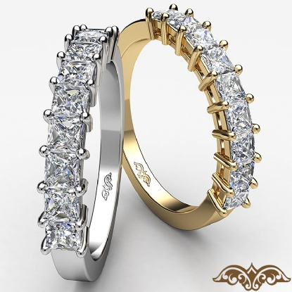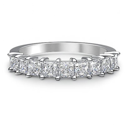0.75 Carat Princess Diamond Half Wedding Band Women Ring made in 18k Gold White. (0.75Ct. tw.)