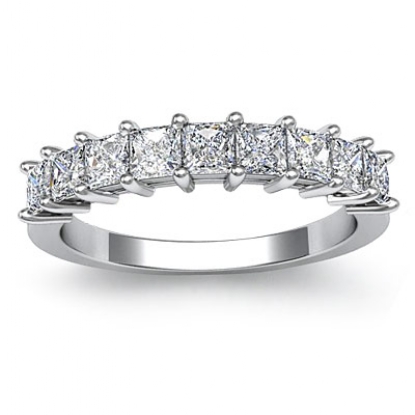 Princess Diamond Shared Prong Half Wedding Band Women's Ring 18k W Gold (0.75Ct. tw.)