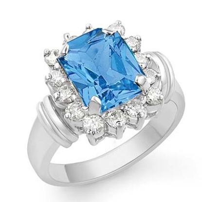 2.75 Carat Blue Topaz Gemstone & 0.70 carat Round Diamond Women's Fashion Ring Made in 14k White Gold.