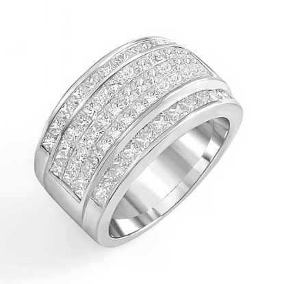 3.75 Carat Princess Cut Diamond Man Wedding Ring & Men's Fashion Ring made in 14k White Gold.