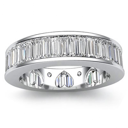 3.5 Carat Baguette Diamond Channel Set Heart Eternity Wedding Ring Band made in 14k White Gold.