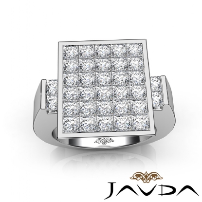 3 Carat Princess Cut Diamond Invisible Set for Men Diamond Ring Fashion Band made in 14k White Gold.