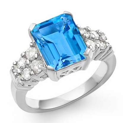 4.4CT Blue Topaz Gemstone & 0.80 carat Round Diamond Women's Fashion Ring made in 14k white Gold.