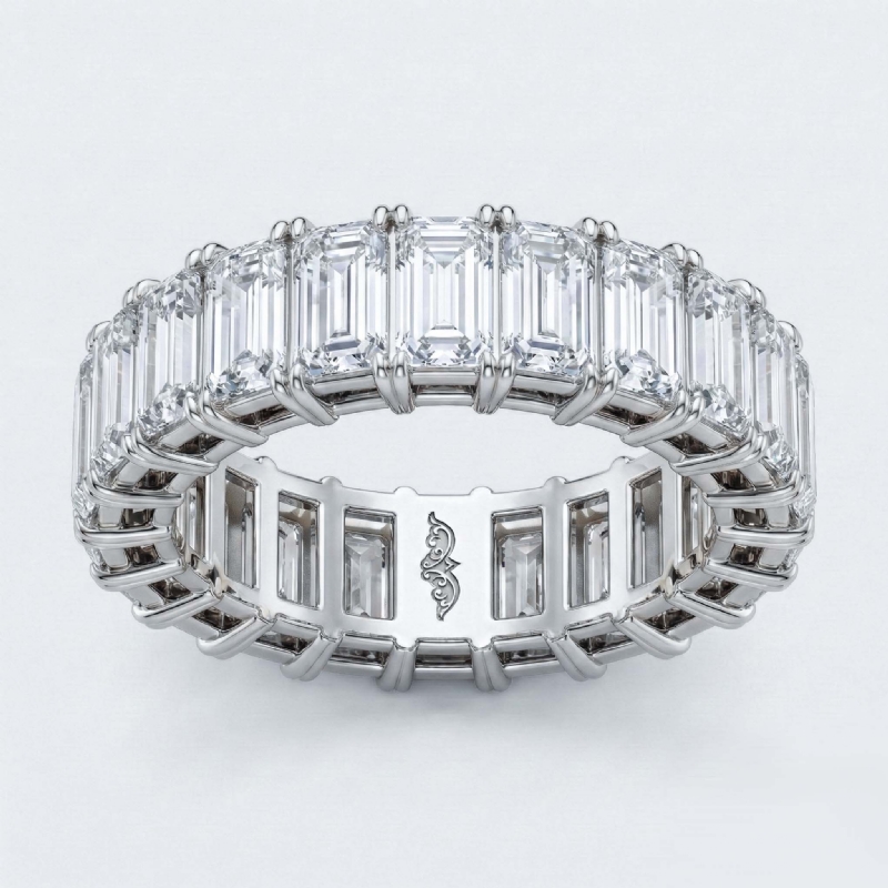 Emerald Cut Diamond Duet Prong Eternity Wedding Women Band Ring 14k WGold 4.5Ct