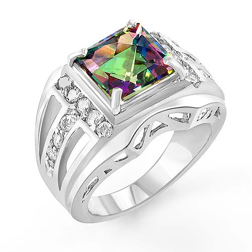 4.70 Carat Princess Cut Rainbow Topaz Gemstone 0.50 Carat Round Diamond Fashion Ring made in 14k White Gold.