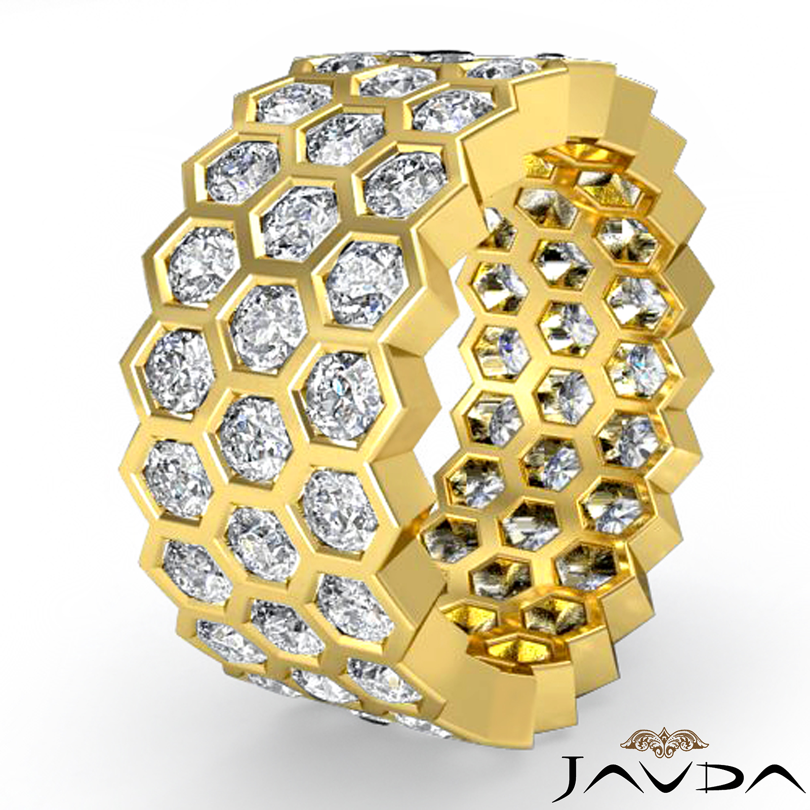Round Cut Diamond Bezel set Womens Eternity Anniversary Ring Band in a Honey chest design made in 14k Gold Yellow. (5.5Ct. tw.)