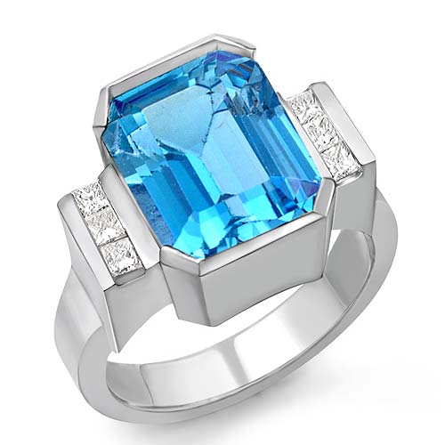 0.30 Carat Princess Diamond 6.25 Carat Blue Topaz Gemstone Classic Ring made in 14k White Gold.