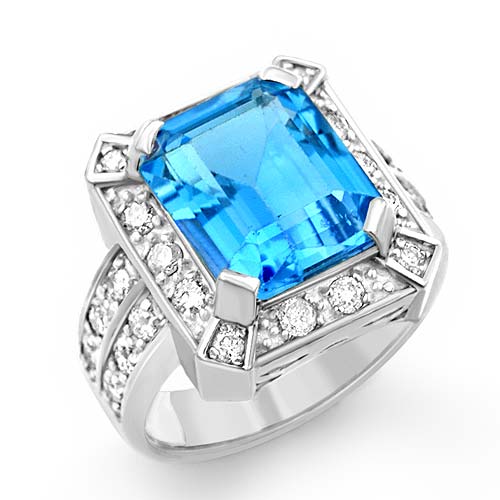 7.60 Ct Emerald Blue Tpz Gemstone Diamond Fashion Ring WG
