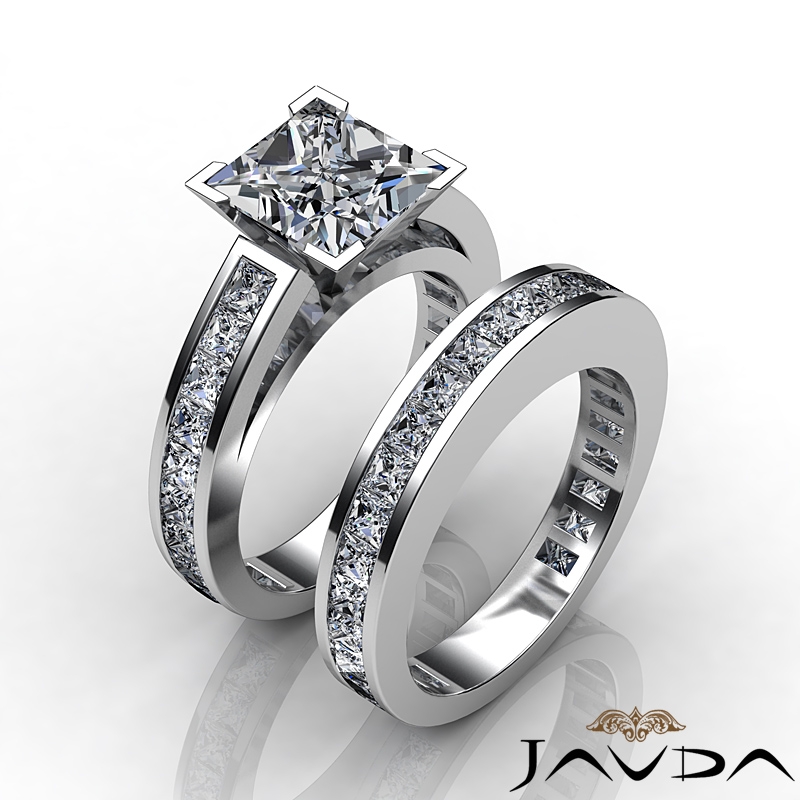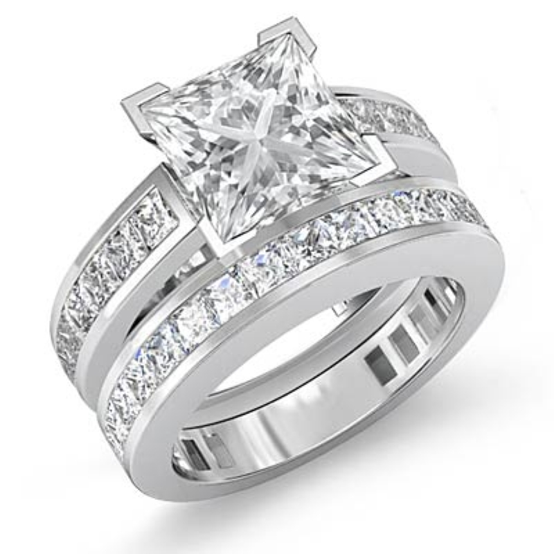 Channel Shank Bridal Set style Engagement Ring, center is Princess shape Diamond Report by GIA, J Color & VS1 clarity, Made in 14k White Gold (3.61 ct. tw.)