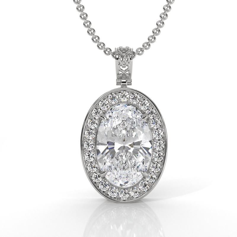 style Engagement Pendant, center is Oval shape Diamond Report by GIA, E Color & VS2 clarity, Made in 14k White Gold (1.13 ct. tw.)