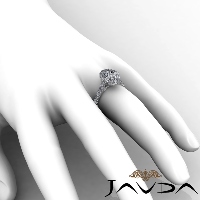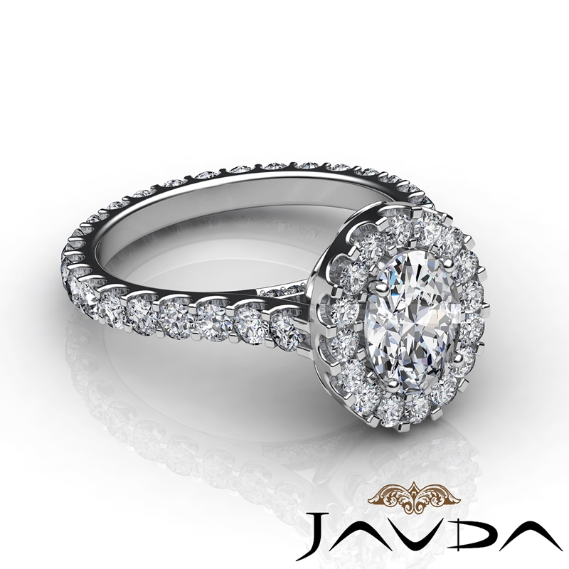 Diamond Engagement Ring 14k White Gold Oval Semi Mount Halo Pave Setting 1.5Ct.