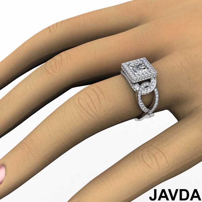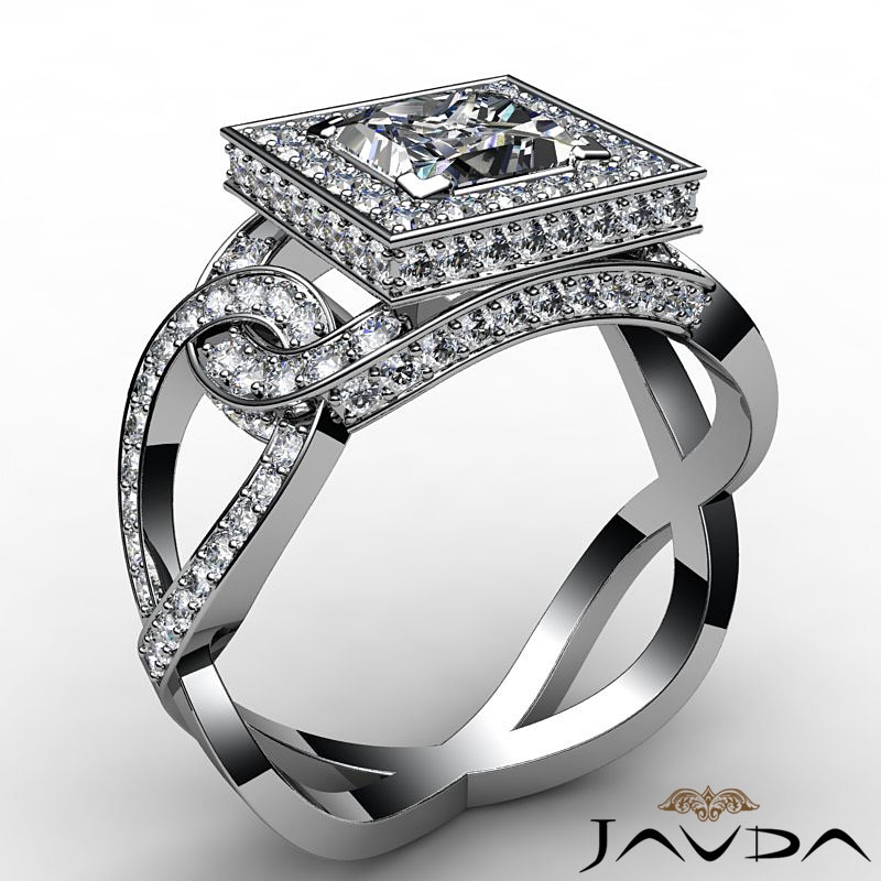Diamond Engagement Princess Semi Mount Halo Pave Set Ring 14k White Gold 1.25Ct - javda.com