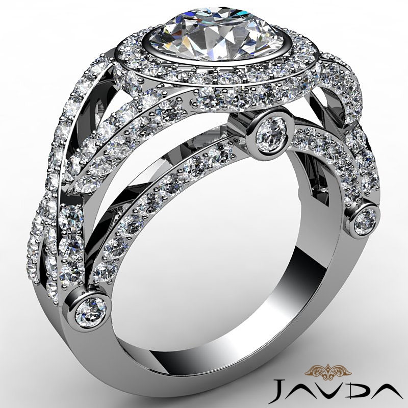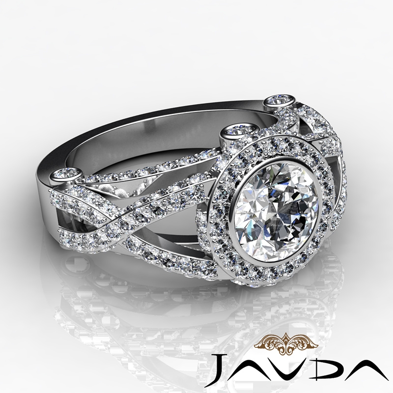 Cross Shank Halo Bezel style Engagement Ring, center is Round shape Diamond Report by GIA, I Color & SI1 clarity, Made in 14k White Gold (2.47 ct. tw.)