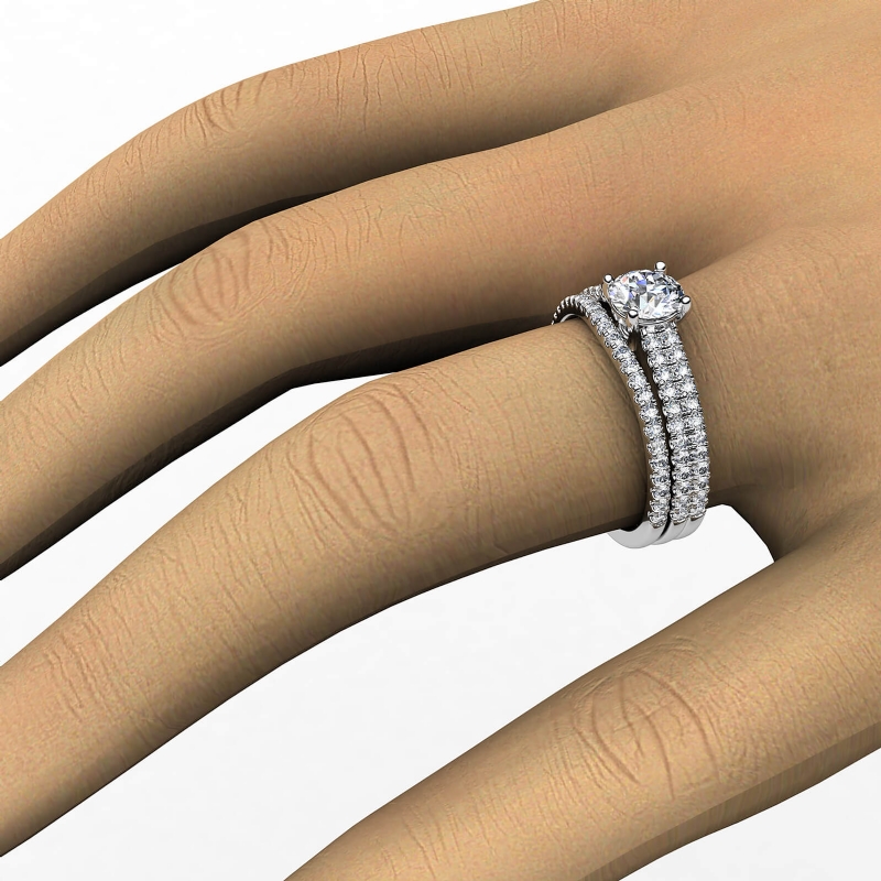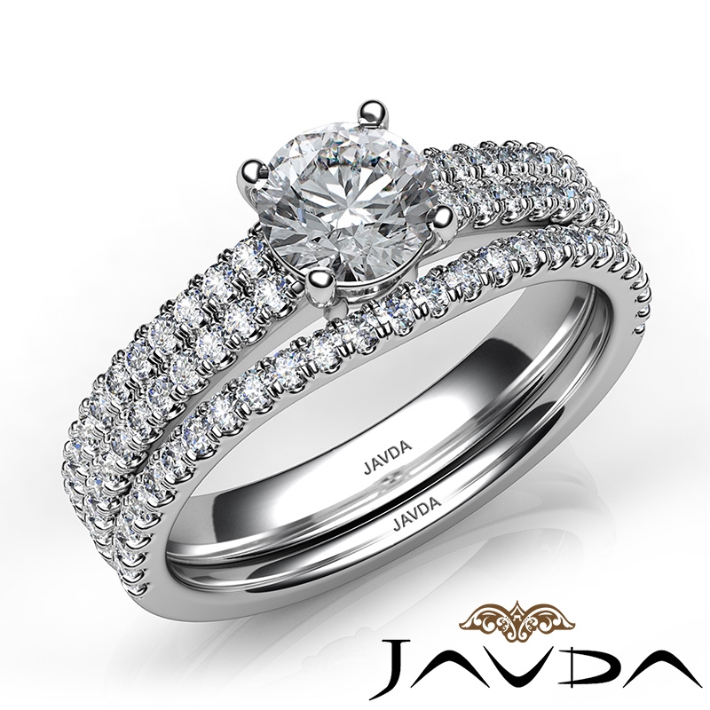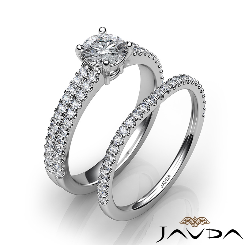 2 Row French Pave Bridal Set style Engagement Ring, center is Round shape Diamond Report by GIA, F Color & VS2 clarity, Made in 14k White Gold (1.3 ct. tw.)