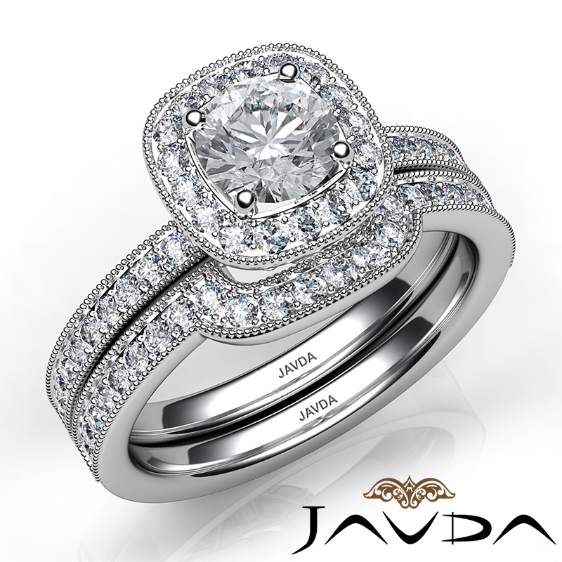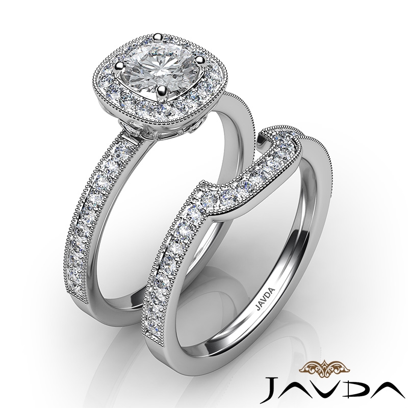 Milgrain Setting Halo Bridal style Engagement Ring, center is Round shape Diamond Report by GIA, E Color & VVS2 clarity, Made in 14k White Gold (1.5 ct. tw.)