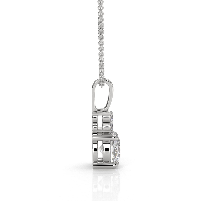 Claw Prong Round Cut Semi Mount Bail Pendant in 14k White Gold 0.04Ct Accents.