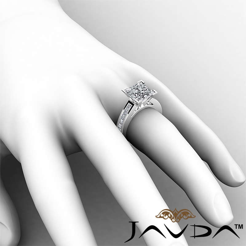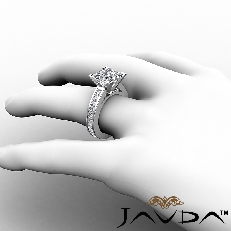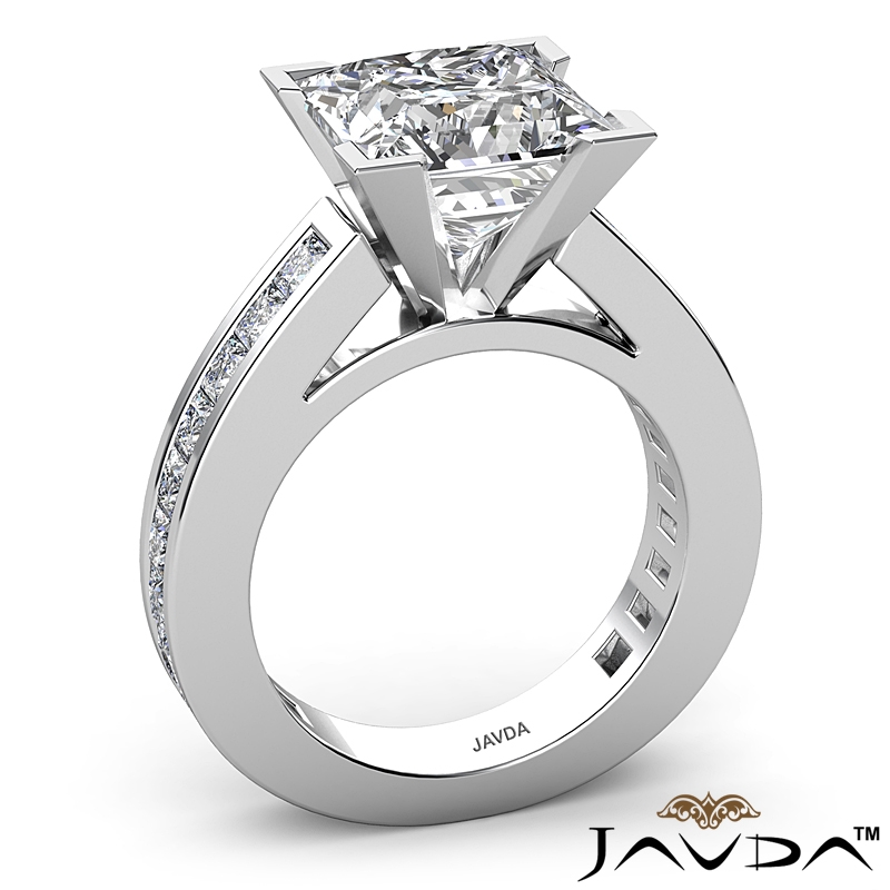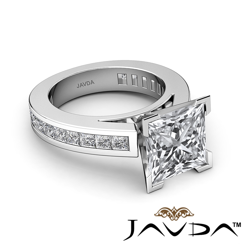 Channel Set Cathedral 4 Prong style Engagement Ring, center is Princess shape Diamond Report by IGI, D Color & VS1 clarity, Made in 14k White Gold (4.33 ct. tw.)