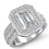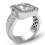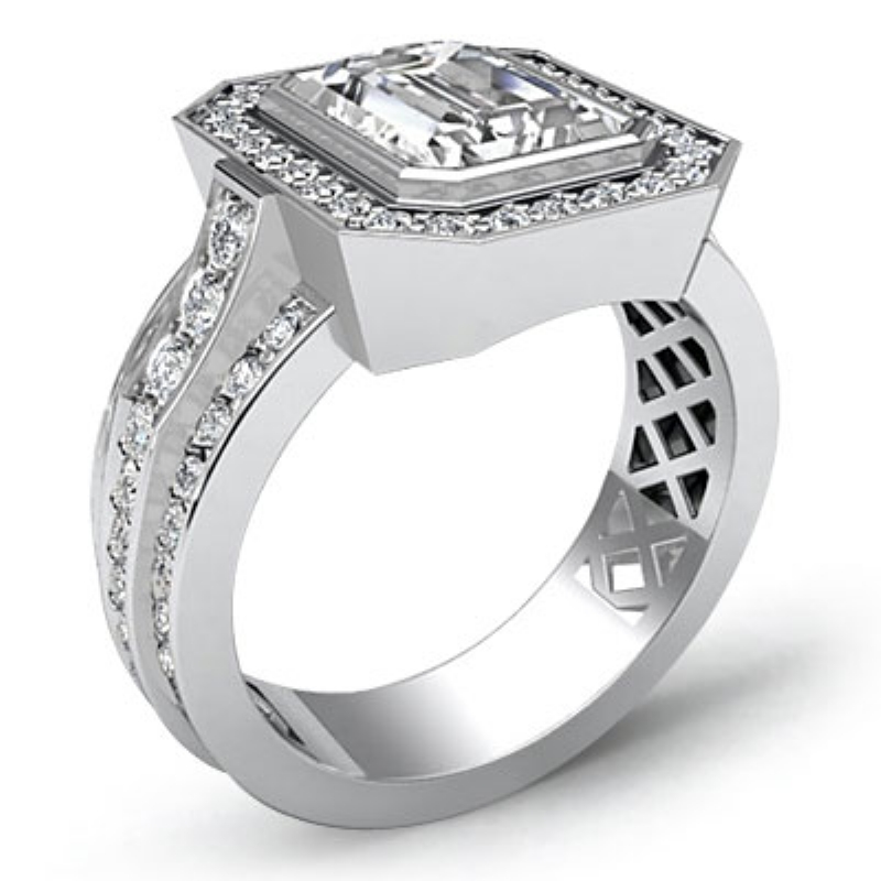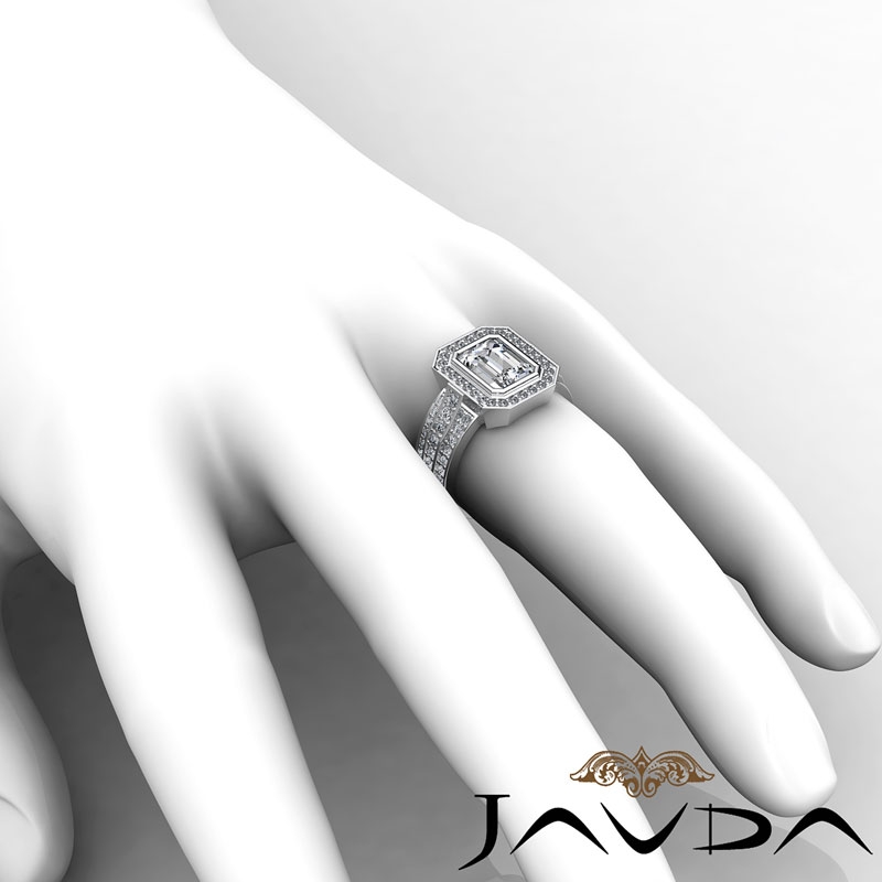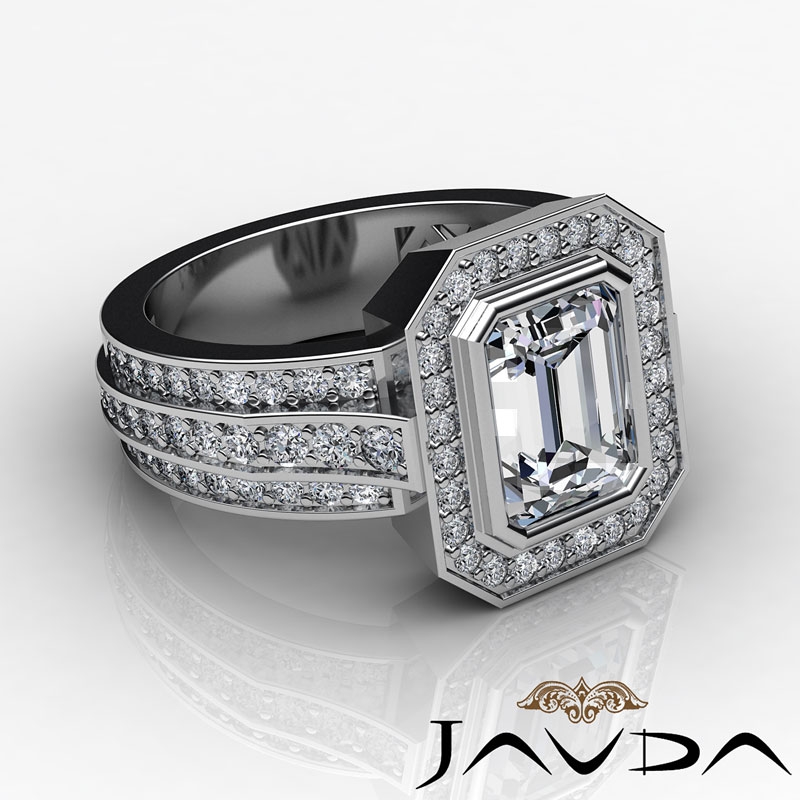 3 Row Shank Bezel Halo Pave style Engagement Ring, center is Emerald shape Diamond Report by GIA, H Color & VVS1 clarity, Made in 14k White Gold (2.12 ct. tw.)