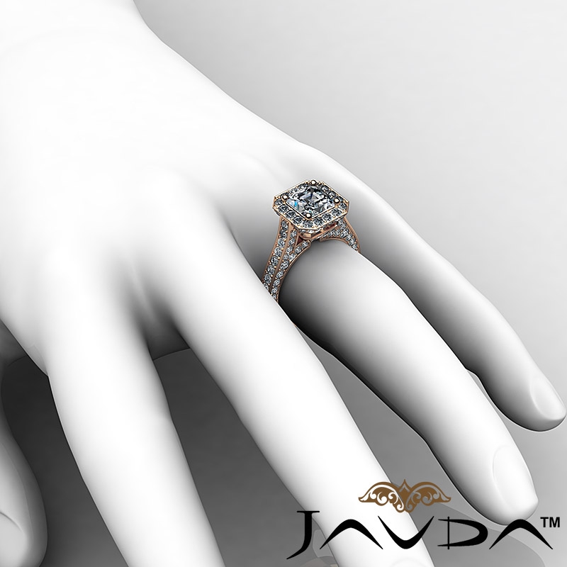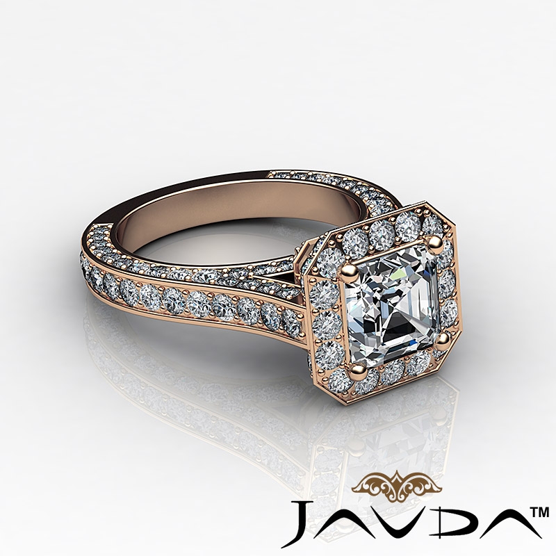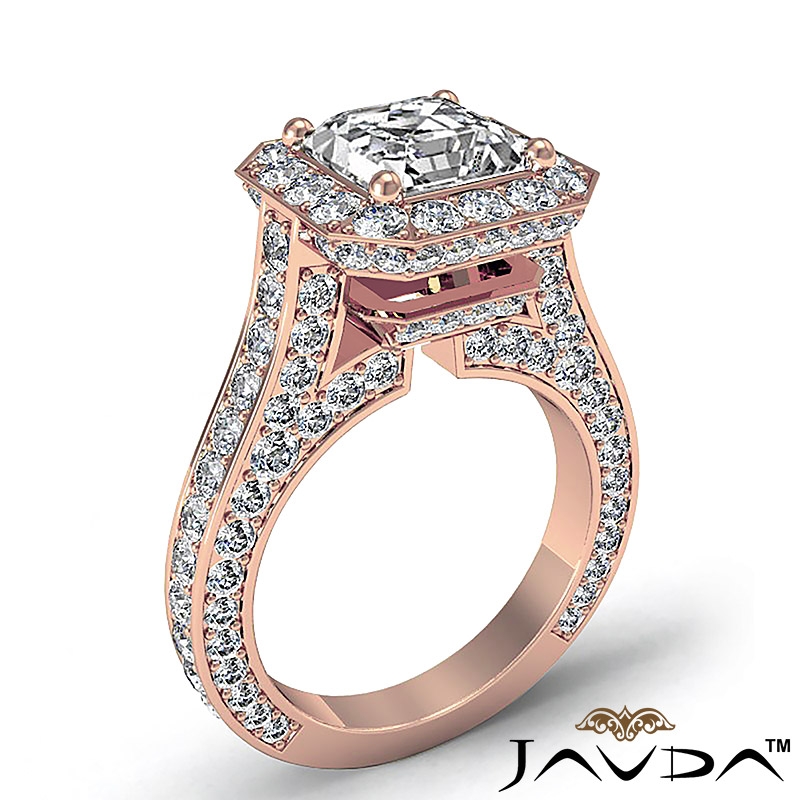 Diamond Engagement Asscher Semi Mount Halo Setting Ring 14k Rose Gold 2.1Ct.