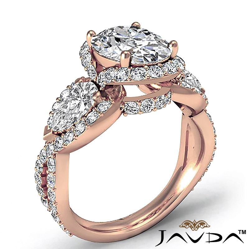 Three 3 Stone Diamond Anniversary Pear Oval Semi Mount Ring 18k Rose Gold 1.4Ct.