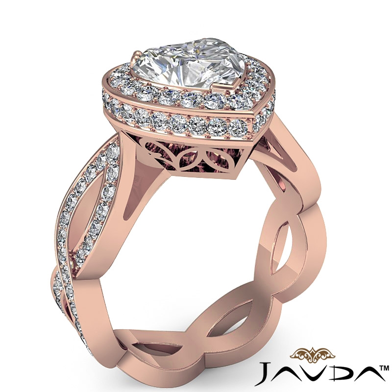 Circa Halo Pave Twisted Shank style Engagement Ring, center is Heart shape Diamond Report by GIA, J Color & SI2 clarity, Made in 18k Rose Gold (2.14 ct. tw.)