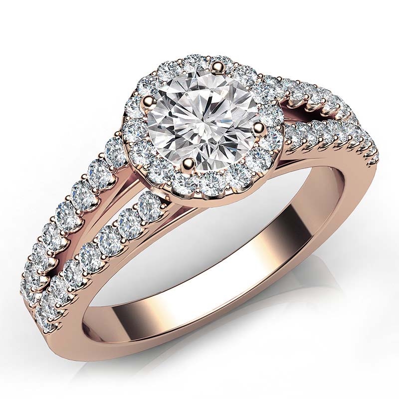 Halo Prong Round Diamond Gorgeous Engagement Semi Mount Ring 18k Rose Gold 0.75Ct.