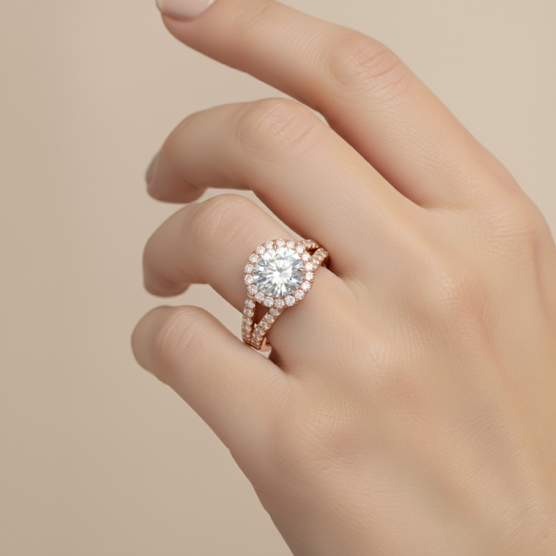 style Engagement Ring, center is Round shape Diamond Report by IGI, D Color & VS1 clarity, Made in 18k Rose Gold (1.79 ct. tw.)