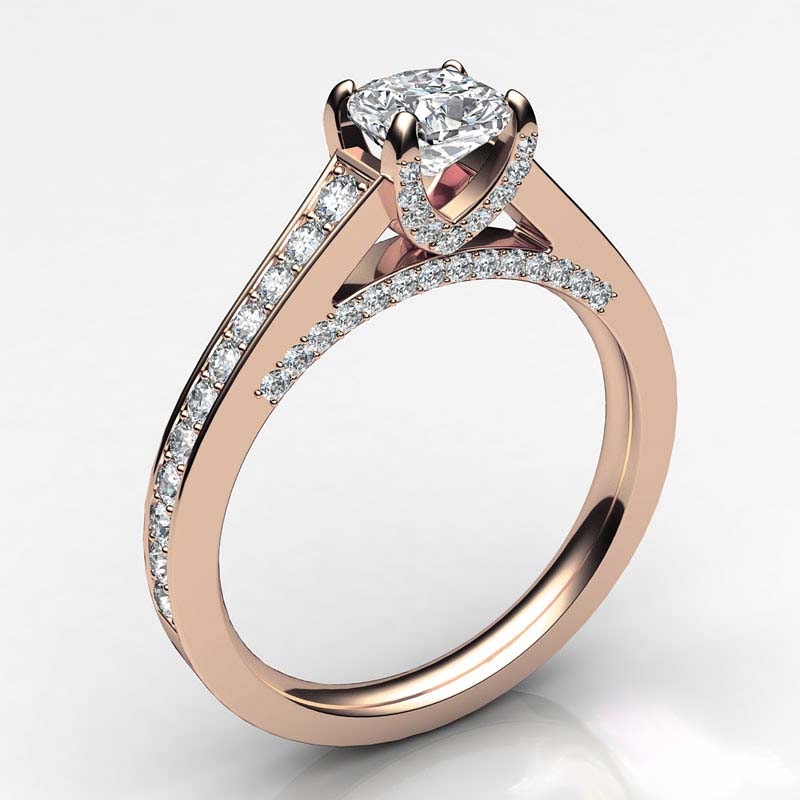 style Engagement Ring, center is Cushion shape Diamond Report by GIA, D Color & VS1 clarity, Made in 18k Rose Gold (1.5 ct. tw.)