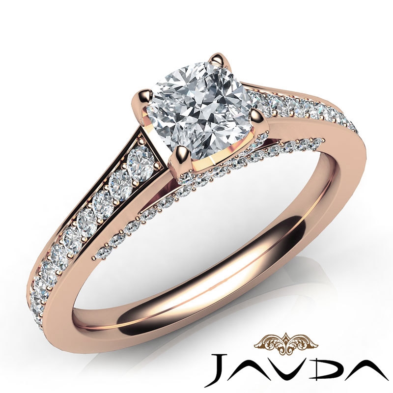 Diamond Engagement Cushion Semi Mount Pave Setting Ring 18k Rose Gold 1Ct.