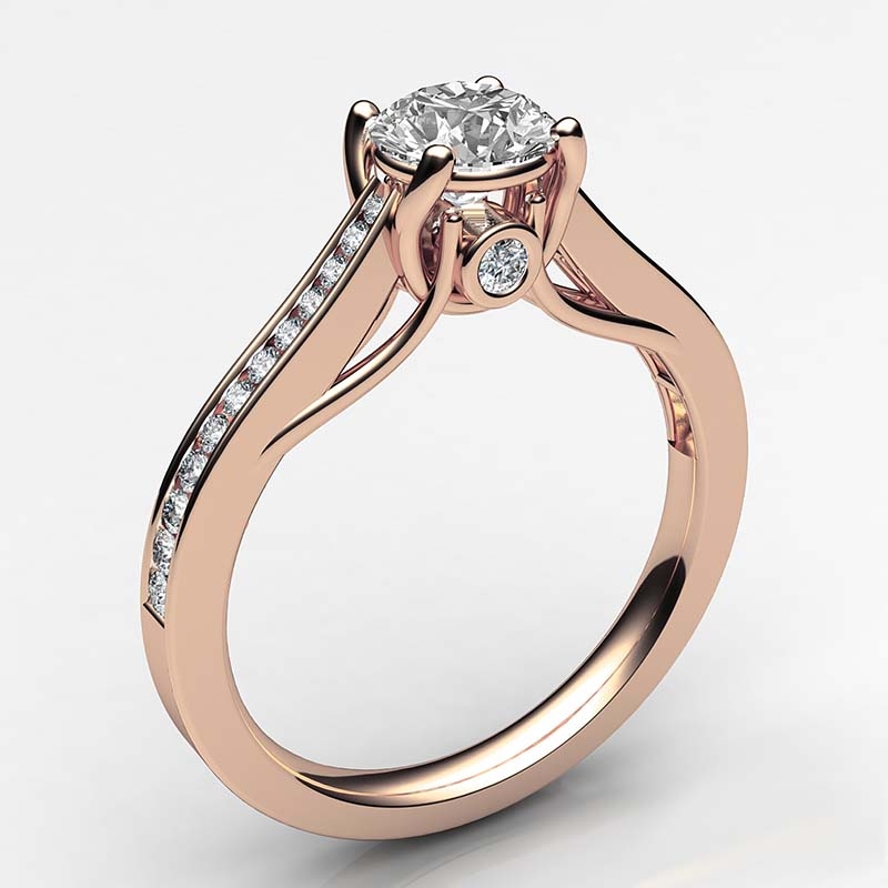 Channel Setting Diamond Engagement Round Semi Mount Ring 14k Rose Gold 0.3Ct.