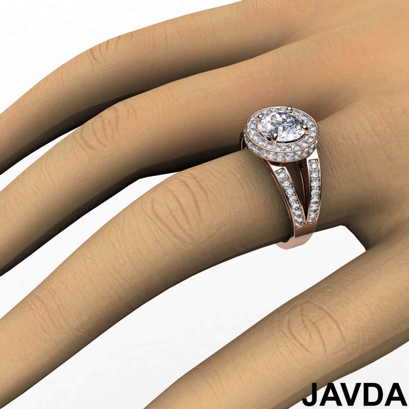 Round Semi Mount Diamond Engagement Halo Pave Setting Ring 14k Rose Gold 0.76Ct.