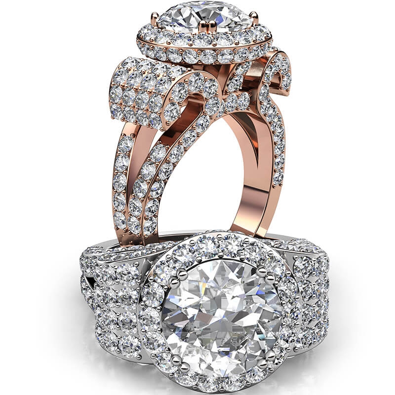 Round Diamond Engagement Ring Antique & Vintage Halo Pave Semi Mount 14k Rose Gold 3.5Ct.