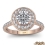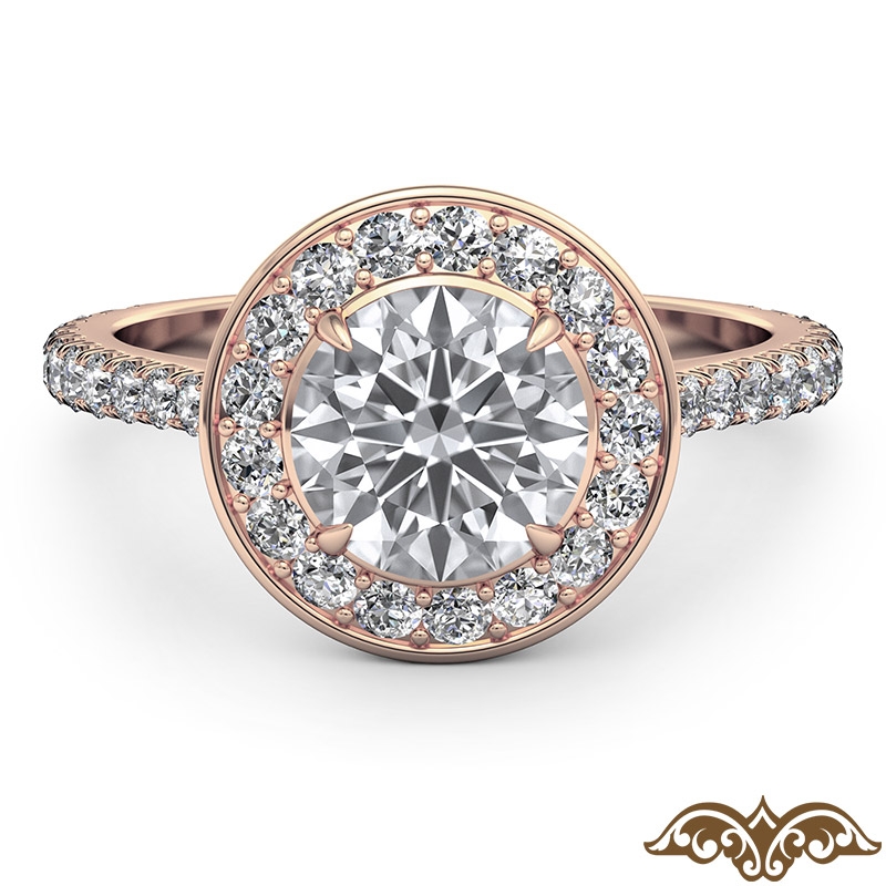 Crown Halo French U Cut Pave style Engagement Ring, center is Round shape Diamond Report by IGI, D Color & VS1 clarity, Made in 14k Rose Gold (1.74 ct. tw.)